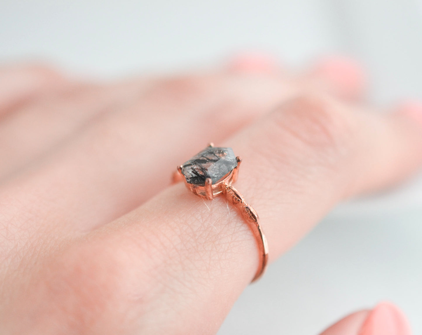 The Iza Ring features a 1.5-carat Black Rutilated Quartz, packed with inky, lightning inclusions that make every stone unpredictable.