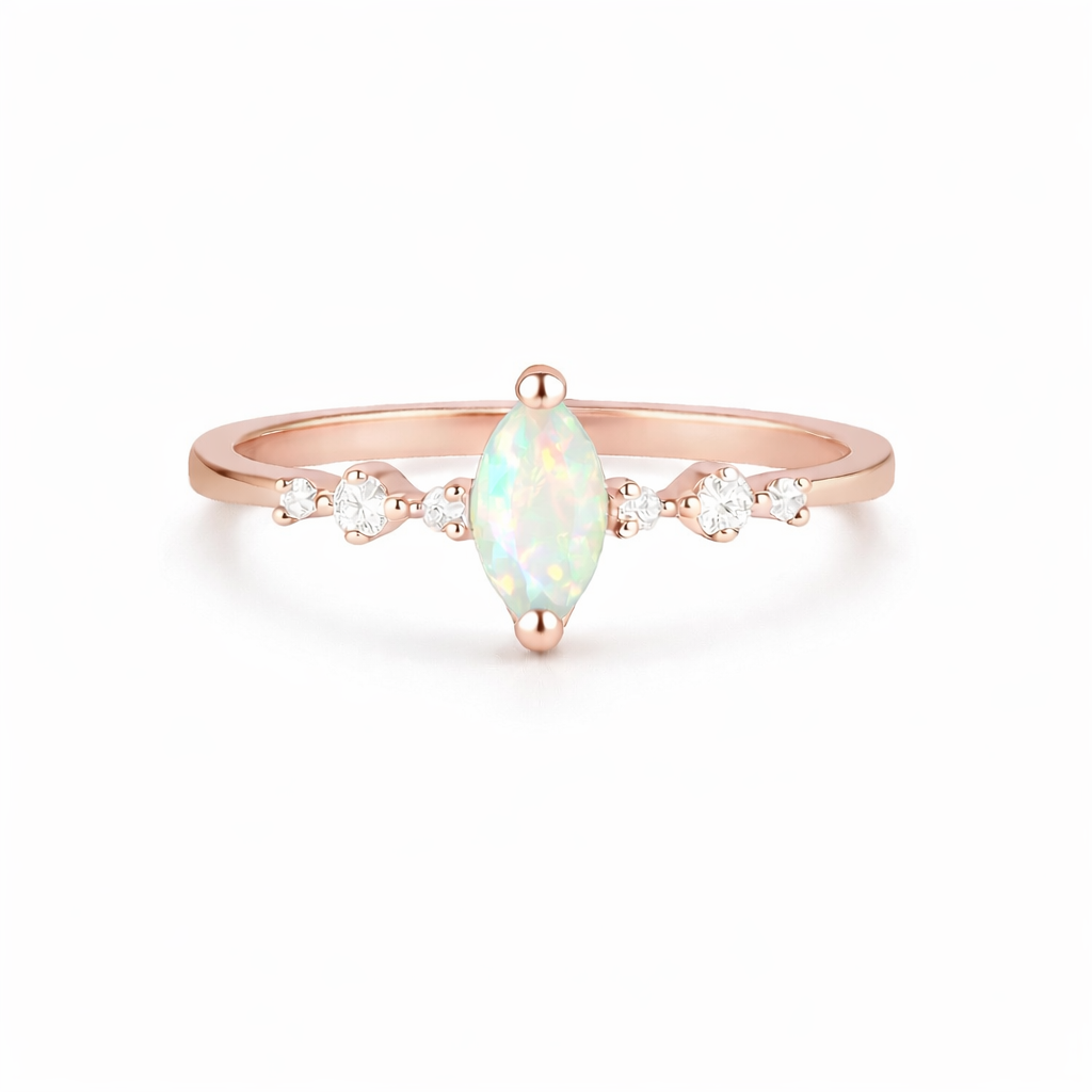 Set in rose gold vermeil, with natural crystal accents, this ring— plays with the light.