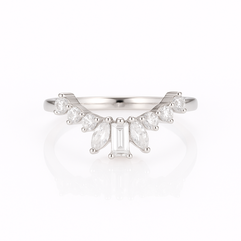 The Cat Curved Gemstone Stacking Band is designed to play well with others—perfect for stacking, pairing with an engagement ring, or just adding extra shine where it’s needed.
