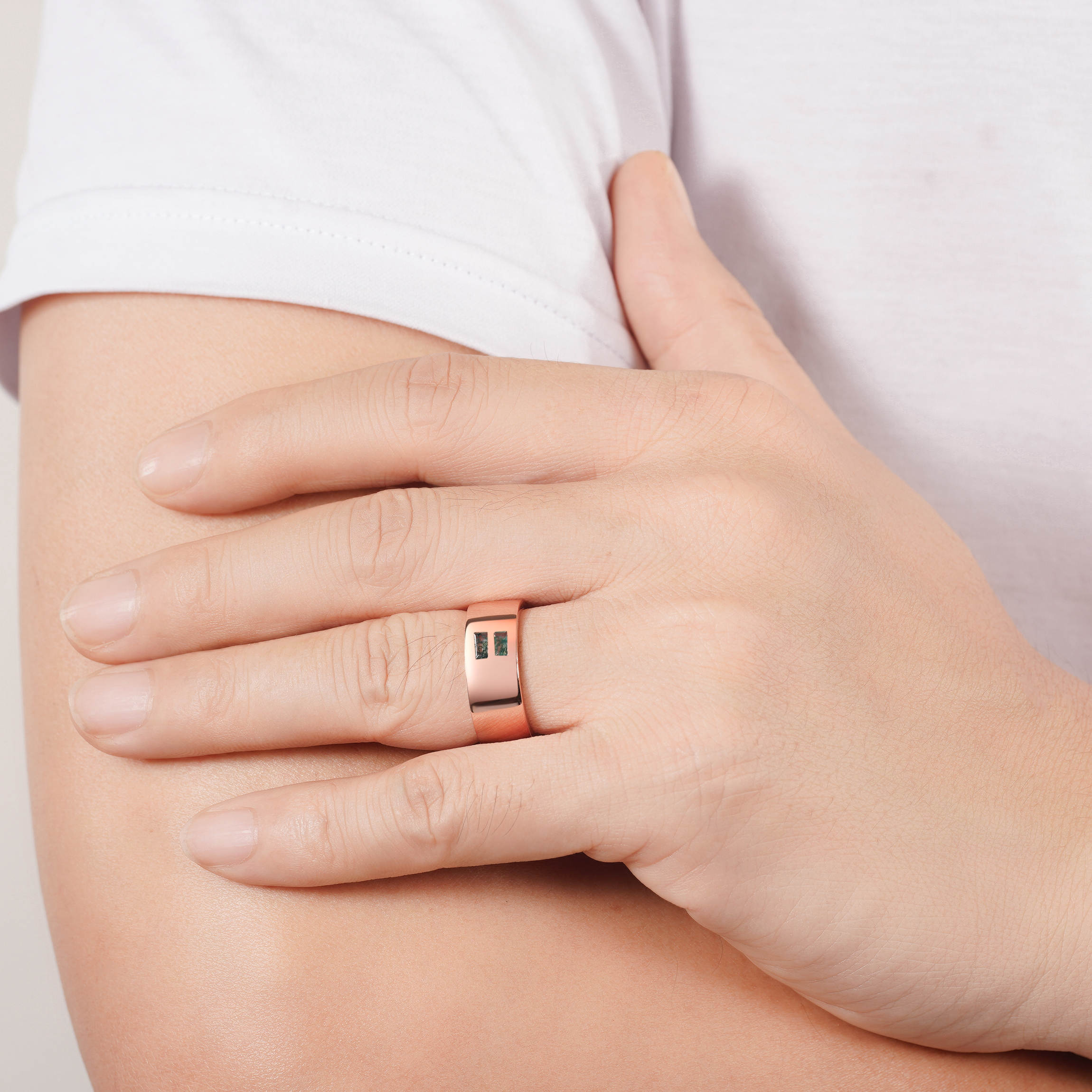 The sterling silver band offers a clean, modern finish, while the moss agate inlay brings a sense of calm, like carrying a piece of the forest wherever you go.