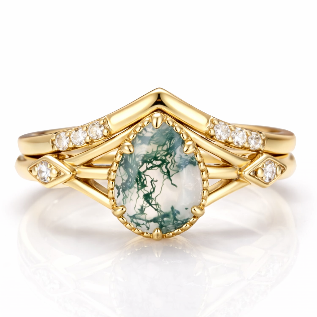 - Moss agate centerpiece—think miniature enchanted forest, no map required