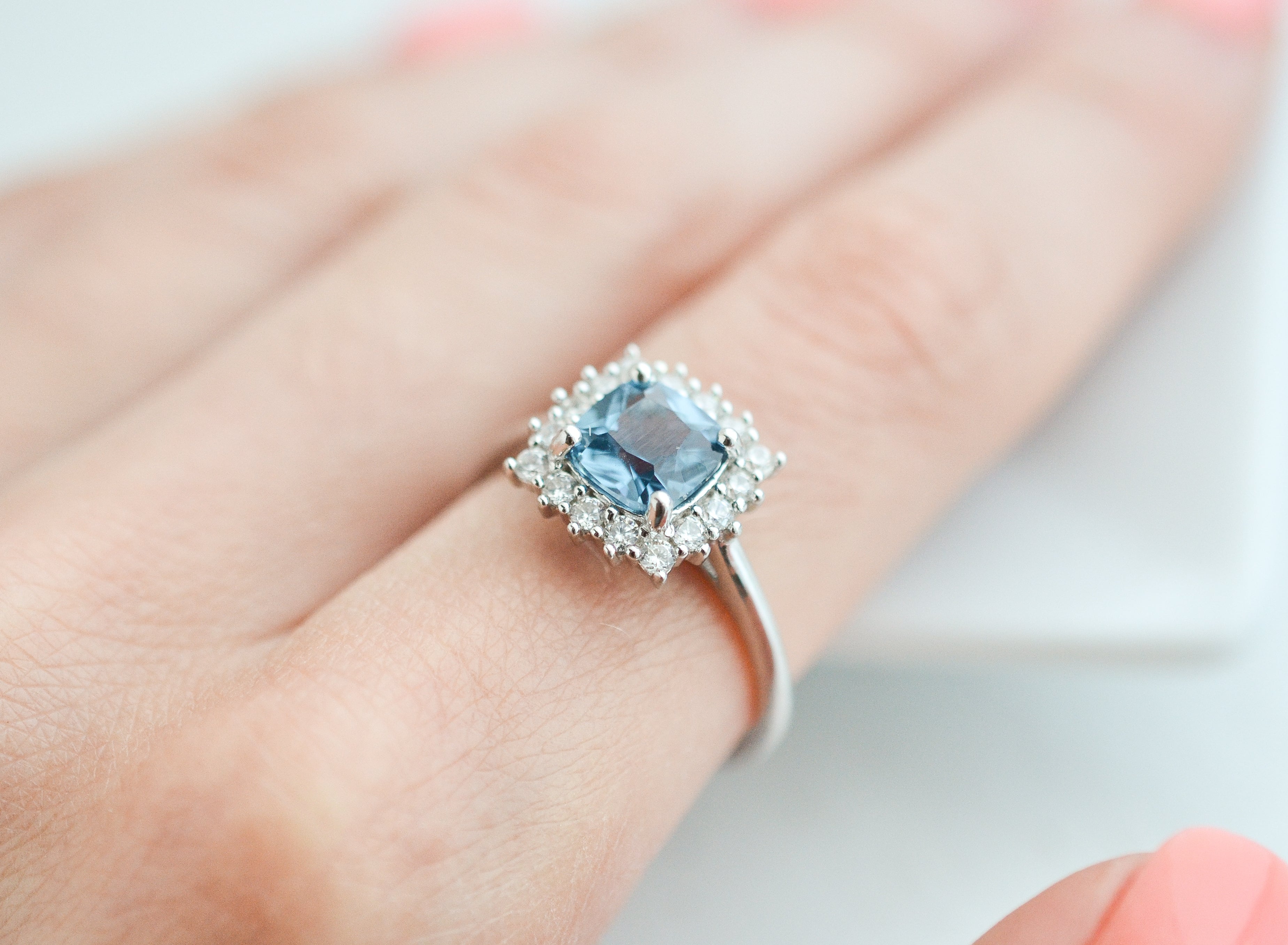 The 6x6mm London blue topaz glows with that deep, moody blue that feels equal parts elegant and untamed.