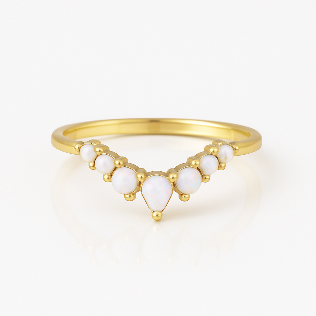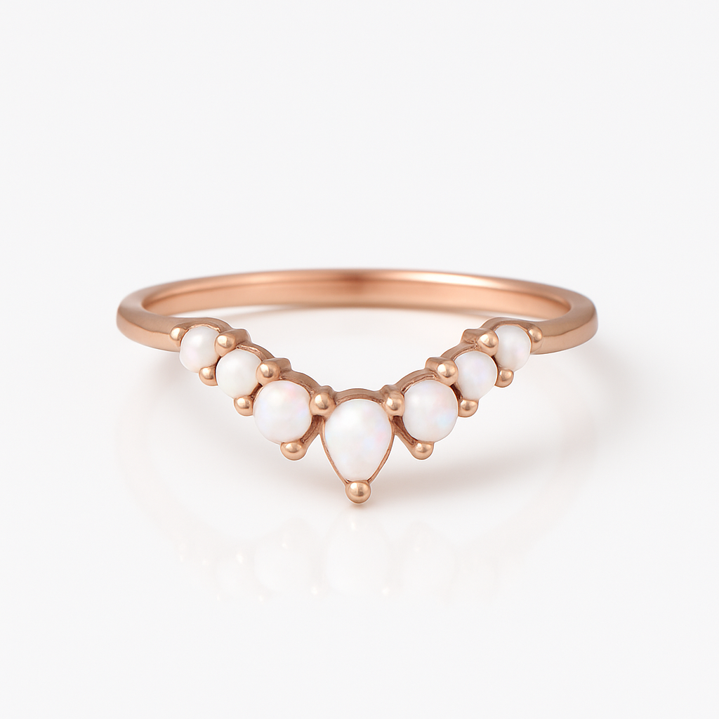 Perfect for weddings, anniversaries, or as a meaningful everyday band, the Isa Curved Opal Ring is a celebration of subtle beauty; a reminder that the simplest designs often hold the deepest meaning.